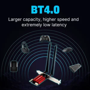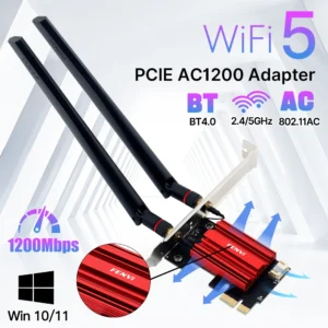 Fenvi WiFi5 AC1200 PCIE Adaptador WiFi BT4.0 Placa WiFi de 1200Mbps Atualização de rede de banda dupla 802.11ac para PC de mesa Win 7/10/11